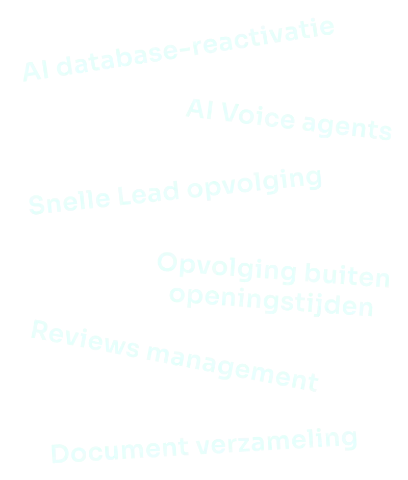 De AI-setup, flows, scripts, sms-campagnes en rapportage regelen wij.